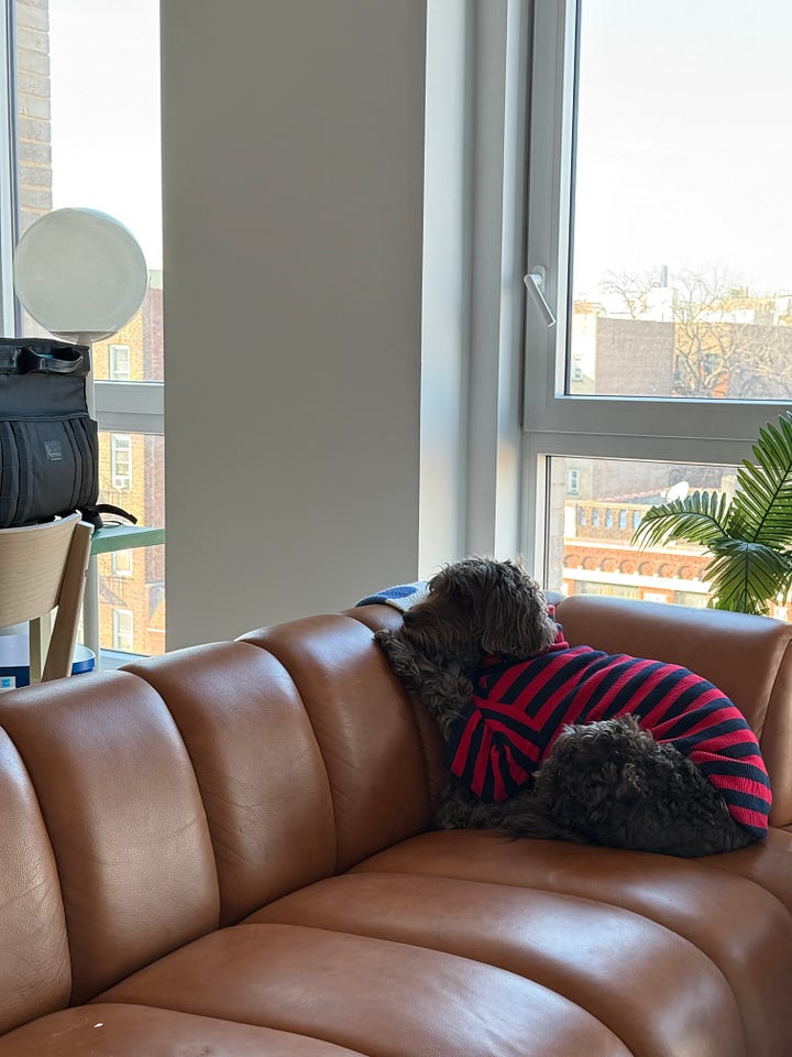 It’s forced me to focus on my interior world. I am reorganizing, cleansing, and making my environment feel better. Cozy game nights, dinners in apartments, and time with dear friends have been plentiful. There’s something really magical about New York in the winter. Taking the train to someone’s apartment, throwing your coat on their bed, and sharing a warm meal — it feels like an honor to participate in the snow globe of the city.