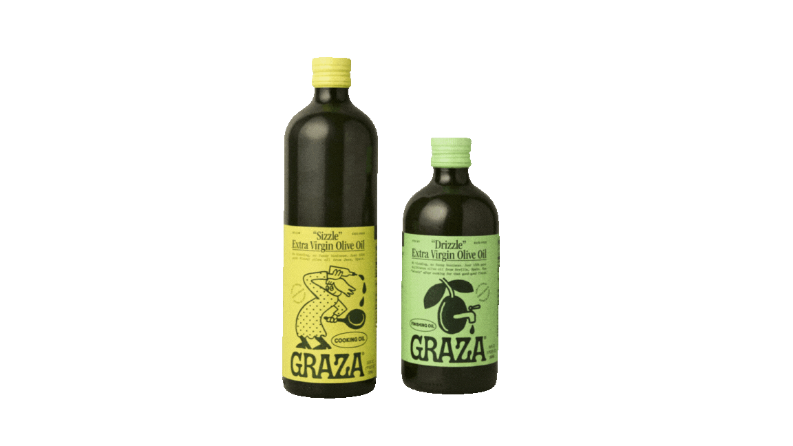 Drizzle a spiral of Graza’s “Drizzle” Extra Virgin Finishing Oil.