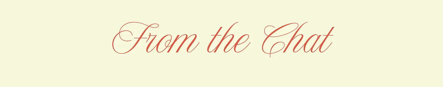 There were many more wonderful and wise recommendations in the chat, if you’d like to keep reading here: