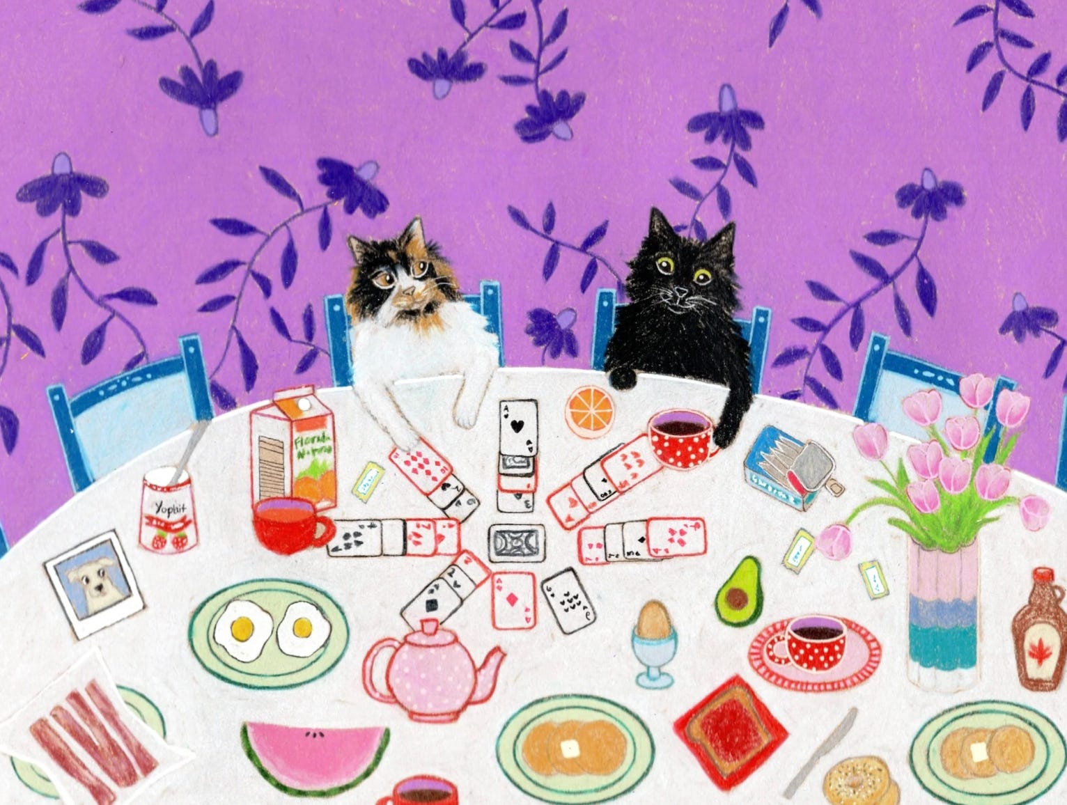 Last month, I was working on illustrations for my first published book, and the deadline coincided with a family trip. So I spent a good amount of the weekend drawing diligently, but trying to be present too. My niece is seven, and trying to figure out why I get to draw for my job. It looks like I am playing, and she understandably has a hard time believing me when I say I’m busy with work, but drawing dogs in scarves. She settled next to me, just to watch the pen strokes quietly; wobbly matcha mugs, quirky blooms from odd-shaped vases. After a while, she said about my drawing, “It’s not perfect.”