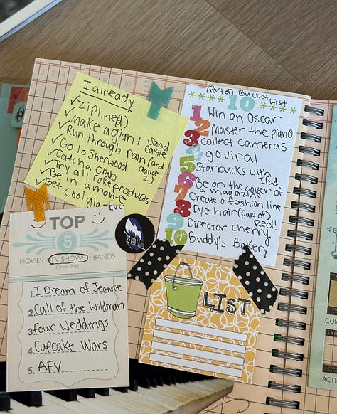 Packs of glue sticks, striped washi tape, and cut-outs filled my summers of only-child bliss, as I’d sit for hours making pages, completely content. I found the Listography Books and Wreck This Journal all around the same time. I don’t know what to call this specific pocket of creative genre that was prevalent at the time, but it really did have a lifelong impact on me, as a person.