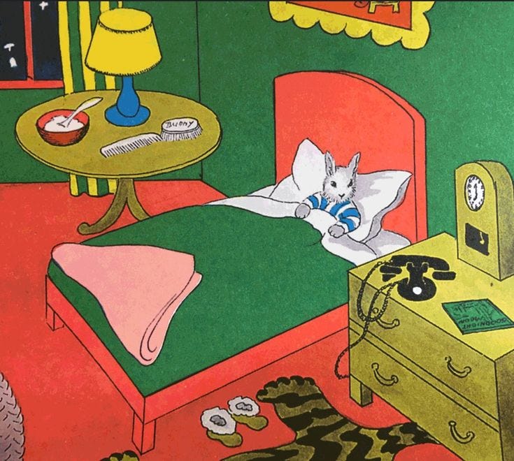 I am writing today like the bunny in Goodnight Moon. I am cozy, but I am sick and very over it. You know when you catch something that just won’t go away? When it gets so bad and so prolonged that you start remembering with fondness when you used to wake up and could breathe through your nose?
